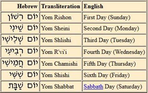 DIAGRAM: Days of the Week in Hebrew – by Phillip Perry